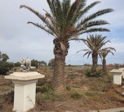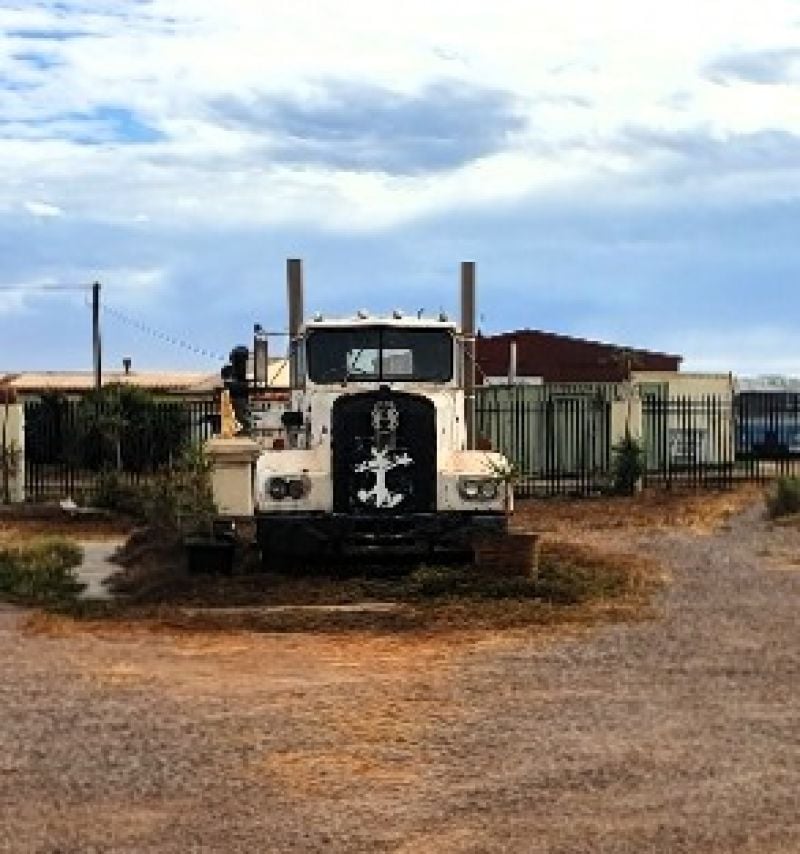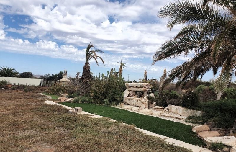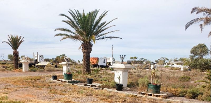 • A creative Mexican style Cactus garden with concrete sculpts and pillars, affectionately known as powered site 1 an ideal spot to hook up your caravan )